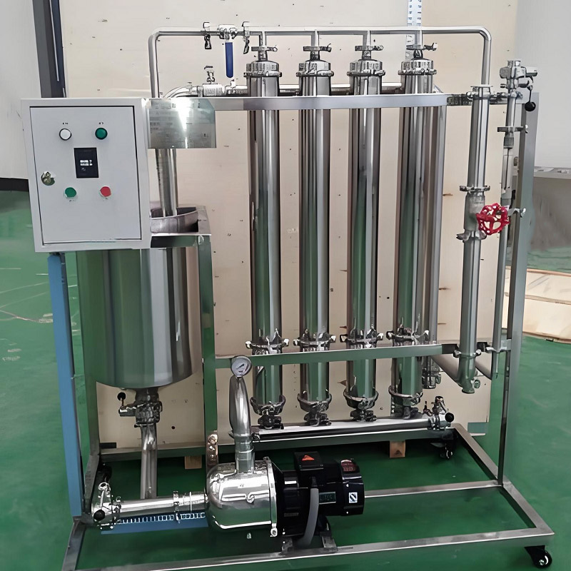 针对性预处理:若原料硬度高(如地下水),需经软化器去除钙镁离子,防止膜表面结垢;若含余氯(如自来水),需加还原剂去除,避免氧化腐蚀膜材料;若为高黏度料液(如中药提取液),需加热稀释降低黏度。